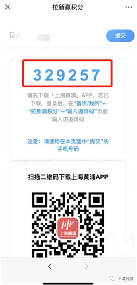 4、被邀请者复制邀请码,随后点击下载链接,下载“上海黄浦”客户端,完成注册并登录。