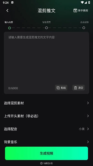 2、混剪推文:自带海量云端素材、智能配音,一键生成;