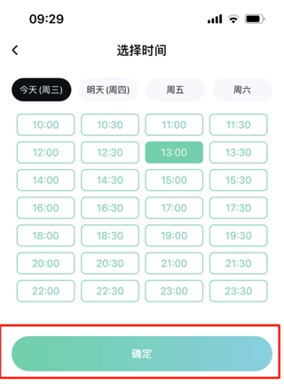 4、选择服务时间,选择要预约的时间