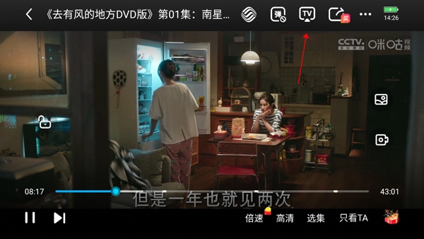 3、投屏:点击视频播放页的投屏按钮,视频一键投射到电视上播放;