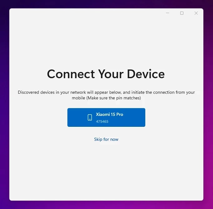 ● 连接启动后,Windows将收到一个弹出窗口以接受或拒绝连接。确保键在两个设备上匹配。