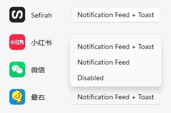 4. 此后,只要手机收到消息,桌面右下角便会即刻弹出一条信息。即便收到大量广告信息,也无需惊慌,在Sefirah的电脑设置中,能够对每个APP的通知方式进行调整。