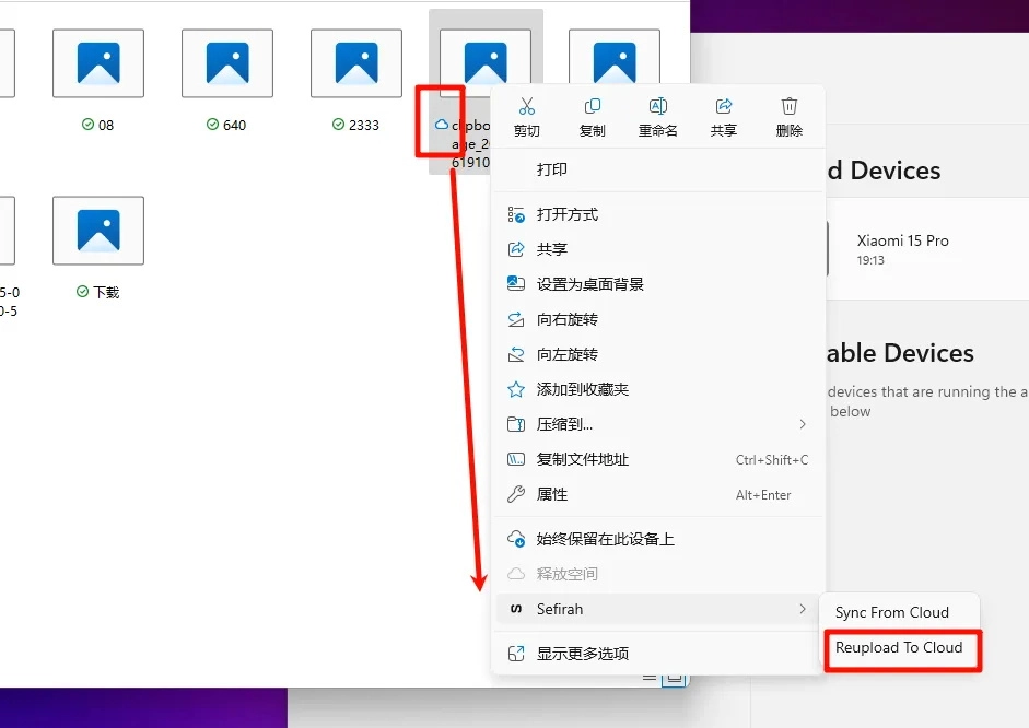 7.Sefirah挂载的方式就相当于使用WPS的文件同步,如果出现这个图标,建议右键手动点一下推送。