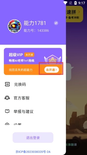打开你的能力星球App,在更多选项界面点击会员功能。