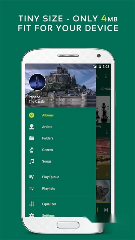 2、通过专辑,艺术家,文件夹和流派等分类管理和播放音乐