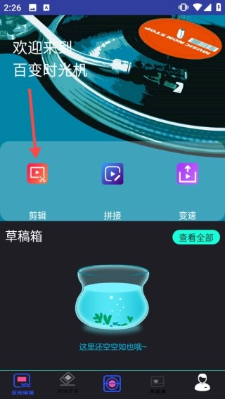 1. 开启软件,挑选剪辑、拼接、变速之类的功能。