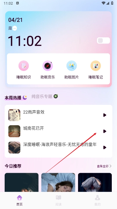 2. 进入首页,即可获取全面的助眠内容。