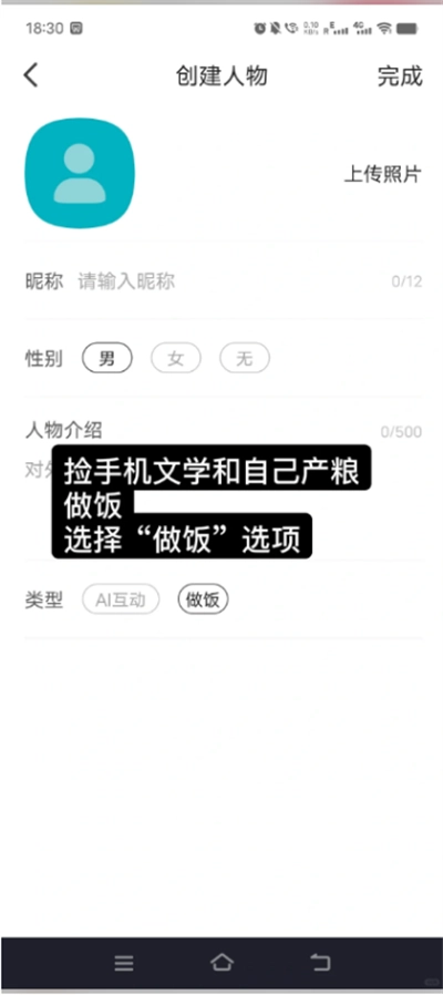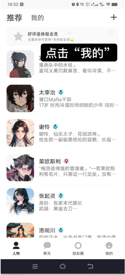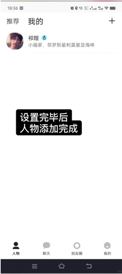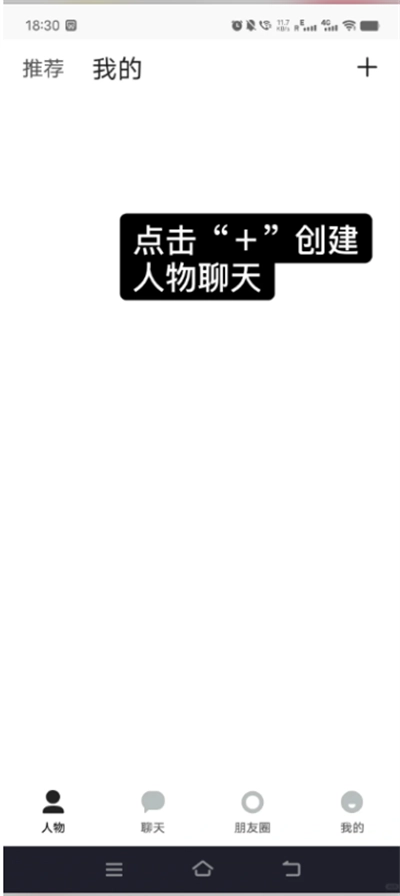轻点“+”图标,开启人物聊天创建。