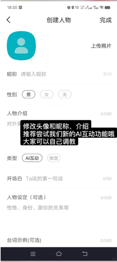 对头像、昵称以及个人介绍进行修改,同时推荐您体验一下全新的AI互动功能。