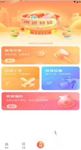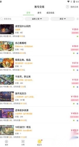 4、点击第三个模块,进入交易区域,在此处你能够进行游戏账号的出售或购买操作。