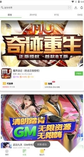 3、在首页点击“分类”选项,这里提供满VIP版、BT版、GM版等各类游戏。