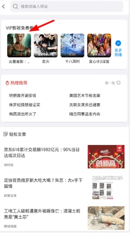 2、在里面搜索查找自己感兴趣的电影,也可以通过“VIP影视免费看”功能点击进入电影的播放界面。