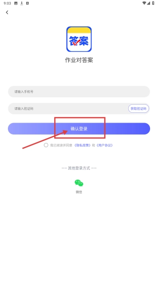 3、填入手机号码与验证码,勾选相关协议,接着点击确认登录按钮,即可完成账号登录。