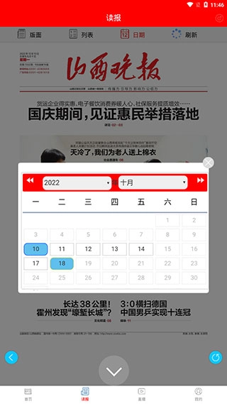 3、点击位于最上方的日期按钮,即可跳转至往期报纸。