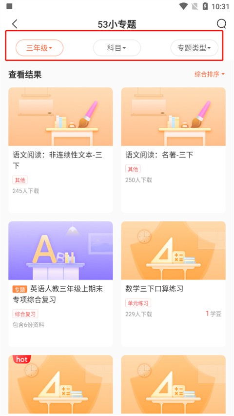 1. 开启53伴学软件,于资源专题里点击“查看更多”。
