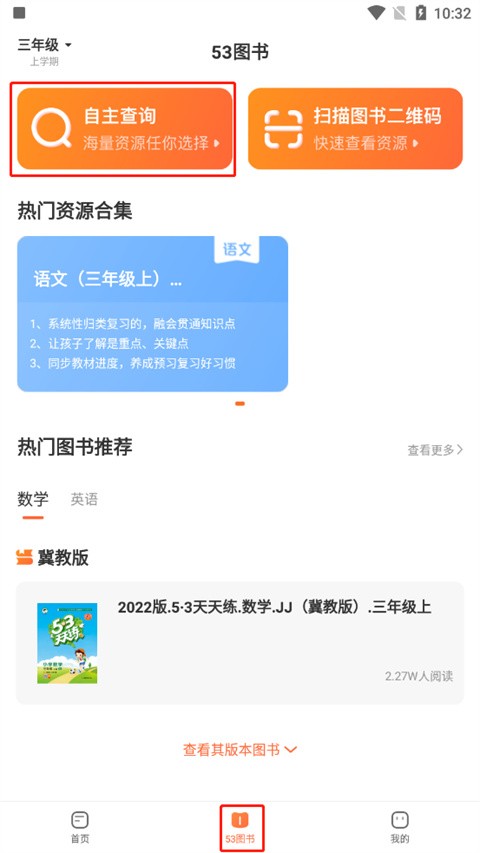 1. 双击启动53伴学软件,进入53图书界面后,点击自主查询选项,或者扫描图书二维码。