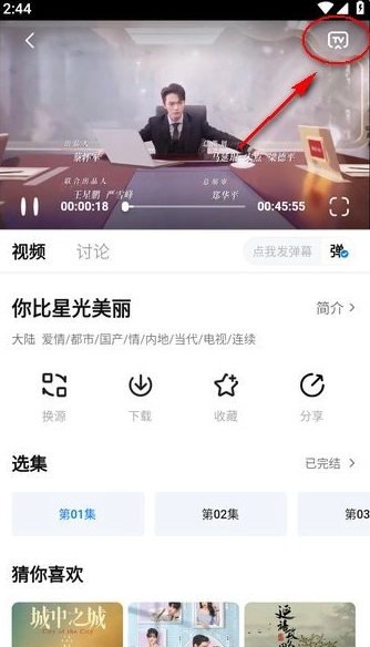 1. 打开天空影视,挑选想要观看的视频,在视频播放页面的右上角,有一个“TV”按钮,点击该按钮。