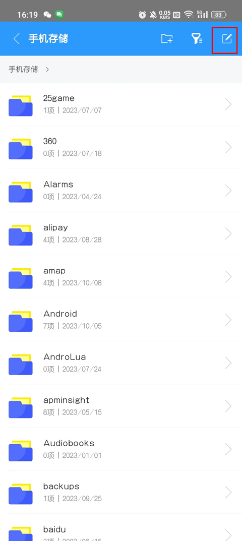 3、点击右上角,全选你想要压缩的文件。
