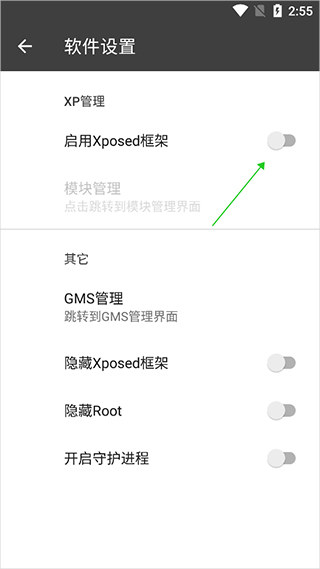 若要开启Xposed框架,可至应用设置页面进行开启操作。