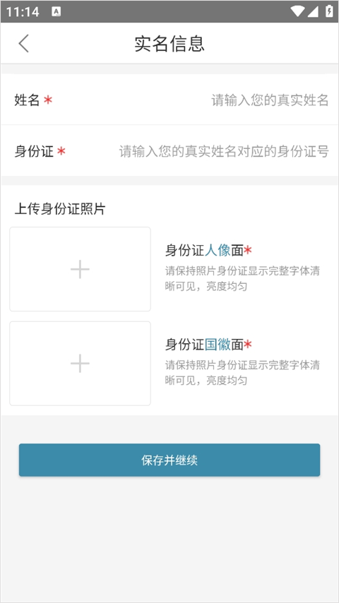 4、选择认证需求后,即可在此页面填写本人实名信息。