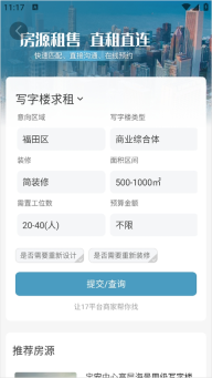 2. 在该区域填入自身对于写字楼的需求,然后点击“提交/查询”按钮。