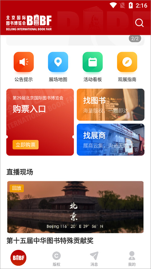 当前,BIBF云书展具备的主要功能涵盖:公告提示、展场地图、活动看板、观展指南、购票入口、找展商、找图书、版权求购、直播现场等。这是一款面向图书行业的在线交流平台,用户能够在此平台发布并分享行业相关信息,预订北京国际图书博览会的线上及线下展位。同时,用户还能够浏览图书、音像制品、电子出版物、数字出版产品、设计印刷产品,尽情遨游于书海世界。有需求的用户可在本平台使用相关功能。