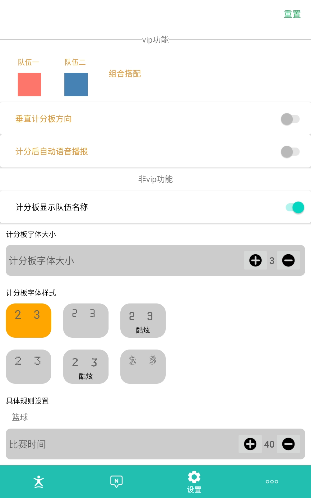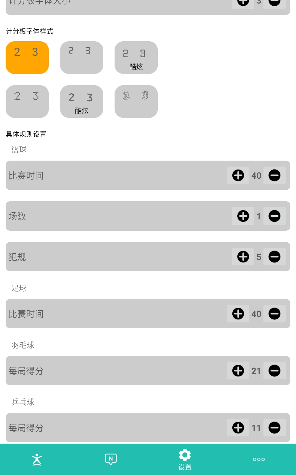 2、球球计分器可用于快速设定比赛赛制、分制等选项。