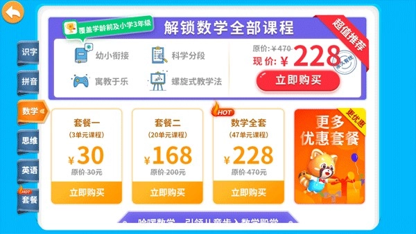 3、依据自身实际需求,挑选适配的套餐,开启您孩子所需的数学思维课程。
