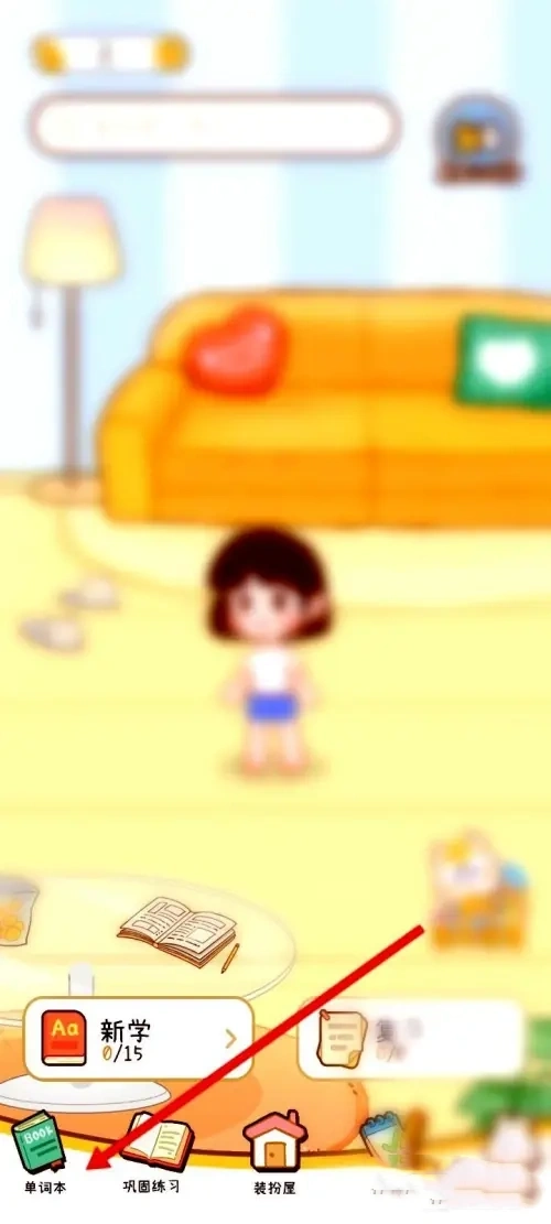 2. 当进入布丁单词的首页时,点击页面底部的“单词本”选项。