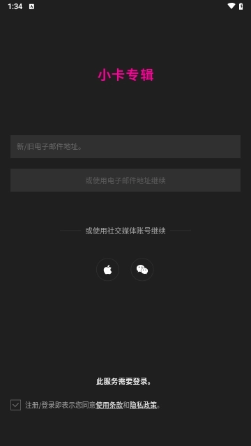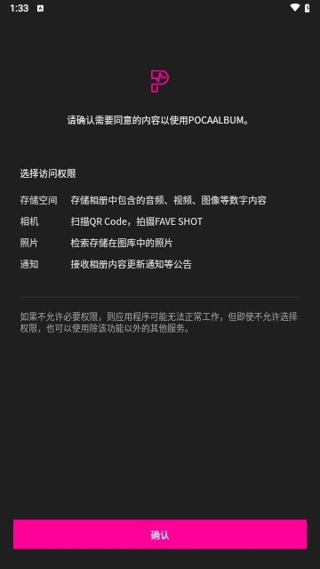 1. 于手机桌面开启小卡专辑应用,首次进入时会弹出相关协议提示,点击同意方能继续操作。