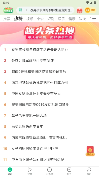 趣头条作为一款专业的新闻资讯平台,为大家呈现了全方位的新闻资讯。在这里,用户随时随地都能浏览各类板块,享受优质的资讯阅读体验。对于热爱新闻的朋友们而言,能第一时间获取信息。此外,平台还提供视频、小说等内容。有需求的朋友,赶快行动起来使用吧!