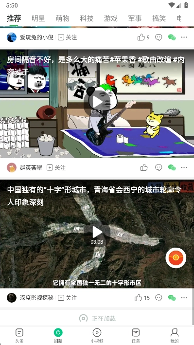5、当然,在视频版块,还能播放大量有趣的短视频。