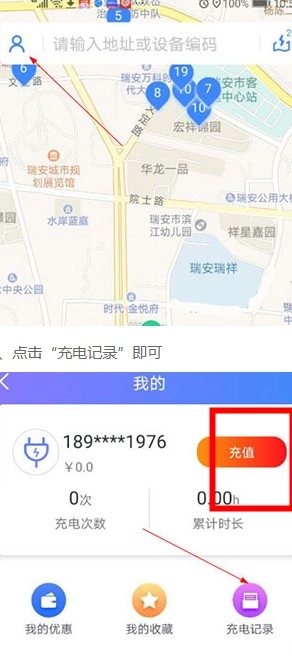 4、进入个人页面后,点击“充电记录”,就能查看充电的详细信息,其中涵盖充电量、充电时间等内容。