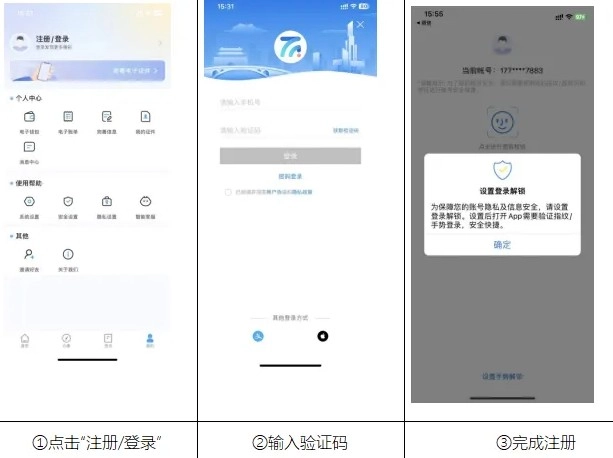 3. 选择设置手势验证或人脸识别验证方式,进而完成注册流程。