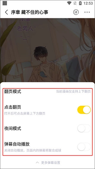 1. 具备全面的阅读功能,用户能够对漫画动态的开关进行设置,还能调整自动播放以及亮度等。