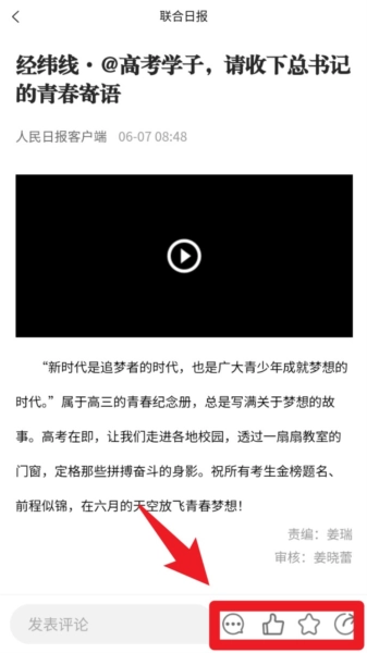 2. 轻点任意资讯标题,即可进入详情页,页面底部设有评论、点赞与收藏等便捷操作入口。