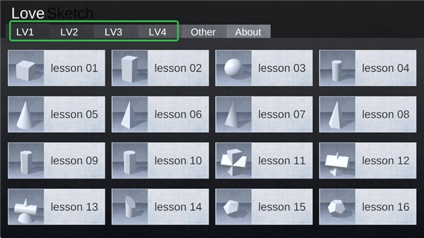 1. 打开爱素描App,首先在其中挑选要练习的静物,这里既有适合新手的立体几何,也有适合有经验者的苹果、雕塑等。