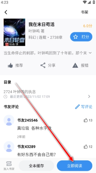 3、当进入小说主页,点击左下角的【加入书架】,随即就能直接阅读。