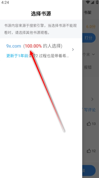 6、只需在显示出的书源里挑选一个进行切换,点击右上角的【刷新】按钮,还能查看是否存在其他新书源。