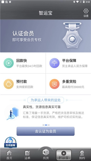 安全无忧:工商运管严格验证,货运宝进行实地认证,更有保险全方位保障,让您无需担忧安全问题!