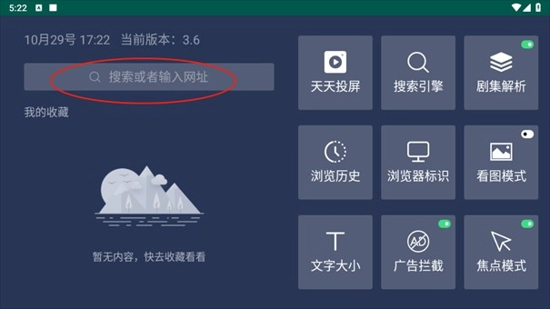 此外,百科浏览器TV版会自动适配电视屏幕,将页面排版调整得更为清晰易读,让你在大屏幕上观看时更加舒适。1. 开启百科浏览器TV版,于搜索框内输入关键词或者网址内容后点击搜索。