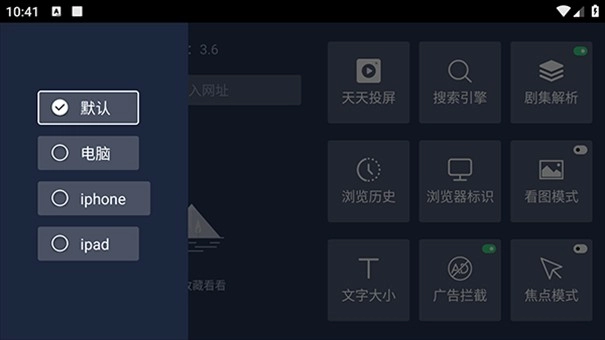 3、要是没有心仪的搜索引擎,可自行添加。此外,百科浏览器TV版的浏览器标识功能能够切换电脑或手机模式。