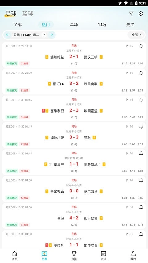 各大赛事的积分排名以及球员、球队的数据,均完整呈现,无一遗漏。