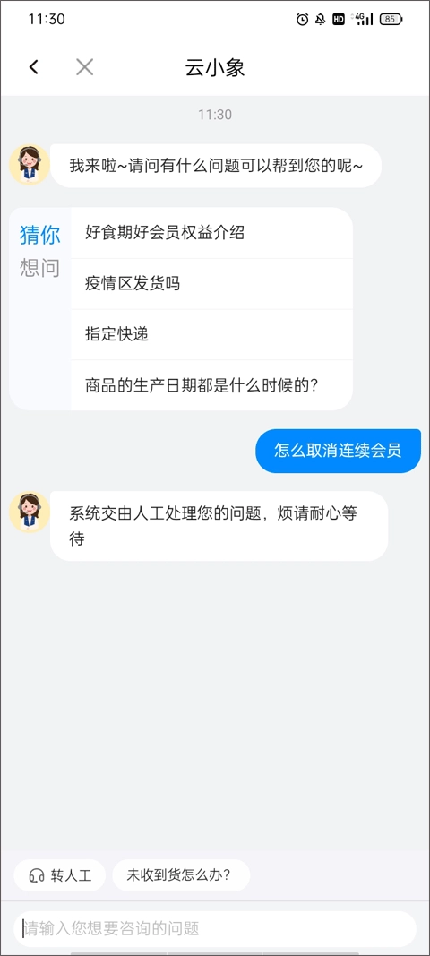 (3)此时客服便会回复你的消息。要是你想获取具体的解决办法,可转接人工服务,届时会有专业的工作人员为你处理。