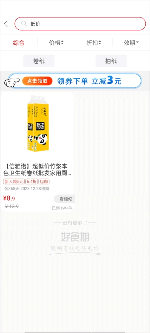 (3)页面会自动刷新出价格最低的食品,这样你就能买到最实惠的商品了。