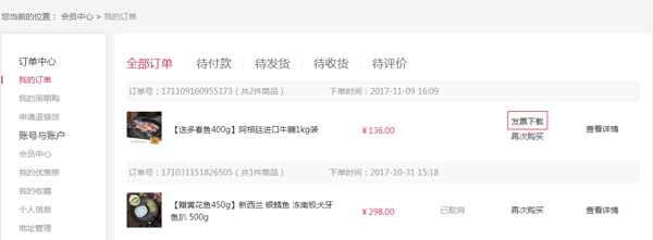 一般在订单发货后48小时内,系统会自动发送电子发票,可在前台订单详情里面可以直接(如订单发生退货,电子发票将作废,订单中的电子发票将无法)。