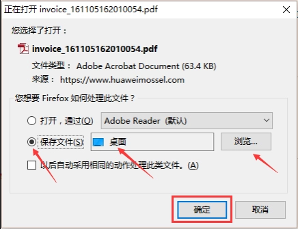 2、用户选择保存文件的名称和路径后点击确定即可完成电子发票的;