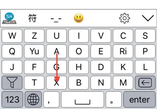 2、若需输入带有h的声母,在包含该拼音首字母的键位上向上滑动一行。