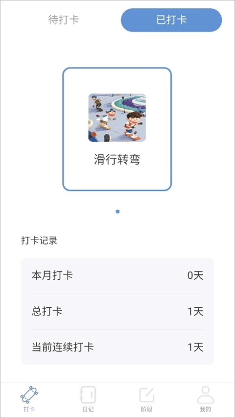 1. 用户能够添加自身想要练习的技巧,并开展打卡练习。