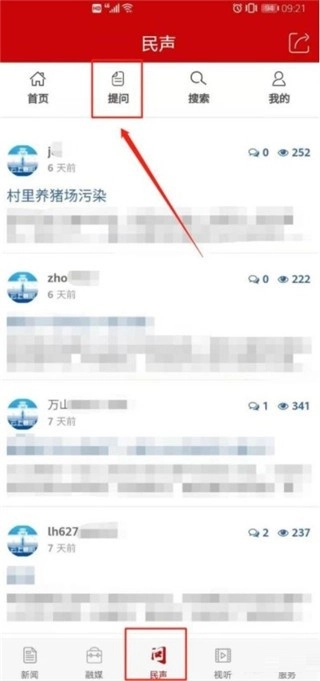 2、然后从首页进入到民生页面,点击“提问”选项。
